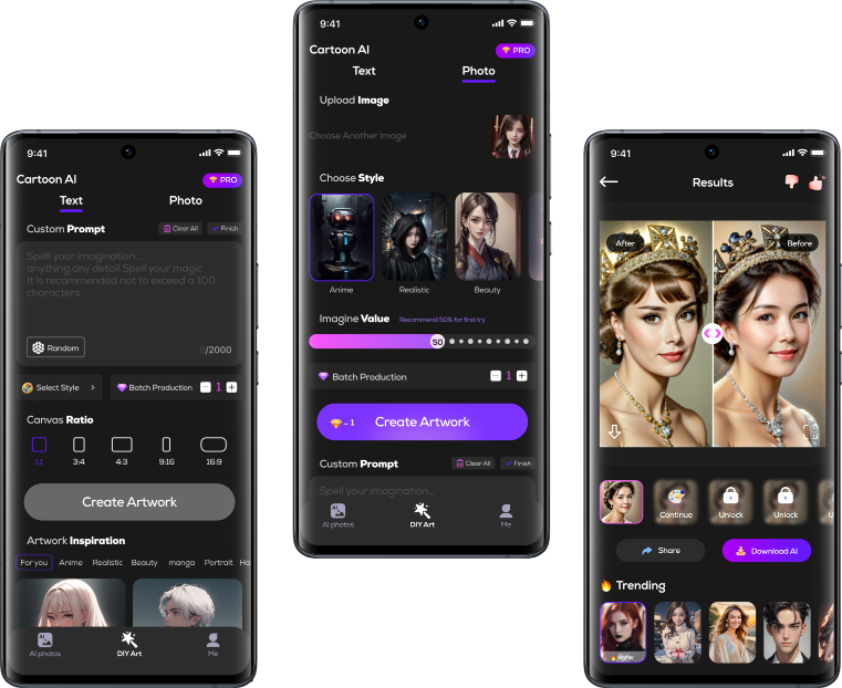 Cartoon AI is an AI-powered image generation app that transforms your words into stunning photos